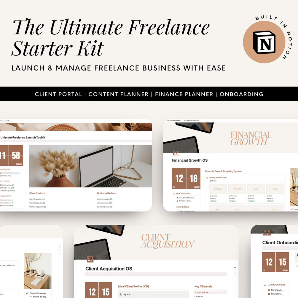Introducing the Ultimate Freelance Starter Kit – your all-in-one Notion dashboard & toolkit designed to take your freelance business from dream to reality.